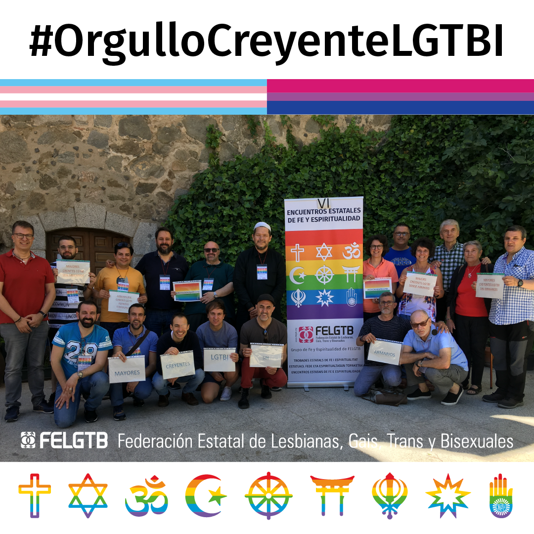 Con motivo del 17 de mayo, el día contra la LGTBIfobia, el grupo de Fe y Espiritualidad de la FELGTB ha organizado una celebración interreligiosa (Cristianismo, Budismo, Judaismo e Islam) para que nos unamos en oración y fraternidad para recordar a todas aquellas personas que han sido y son actualmente víctimas de homofobia, bifobia, transfobia e interfobia. Por ello hemos organizado para el domingo 17 de mayo, a las 12:00 (11 en Canarias) una celebración creyente a la que os invitamos para compartir un espacio comunitario de reflexión y reivindicación.